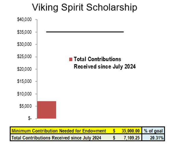 In just over a year since our reunion we have already obtained donations from both classmates and other contacts toward the Viking Spirit Scholarship. You can see our progress and how it will grow with your help in the chart above toward our minimum endowment goal of $35,000.